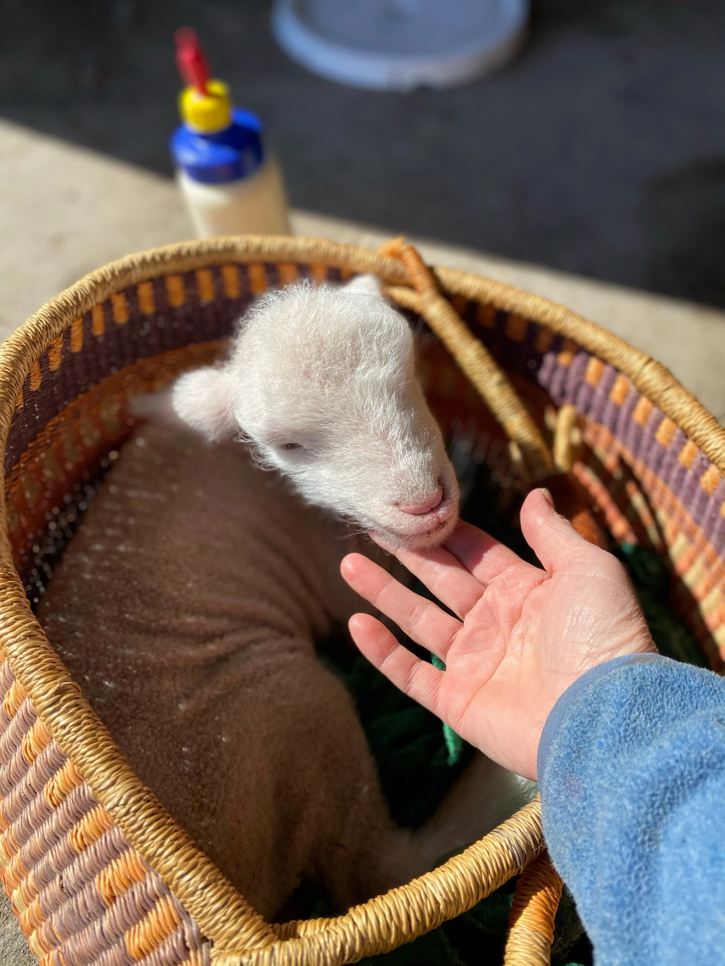 Amazingly, the young mother, flooded as she was with oxytocin, welcomed Z with a sweet nicker. She had her suspicions, but after a couple days of coaxing and distraction, she fully committed, and Z got a mother, and a sister too. By the time they went to pasture together, Z had caught up to her adopted sister in growth, and was the liveliest lamb in the group. You can see pictures of her on my Instagram account, kristinxkimball.